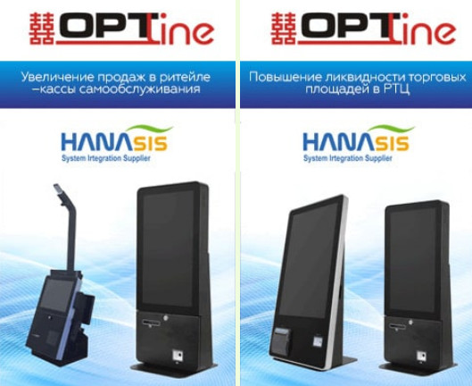 Агентство Массовых Коммуникаций в период с ноября по декабрь 2021 года проводило рекламную кампанию для касс самообслуживания от «Опт-Лайн Плюс». Для этих целей были разработаны рекламные баннеры вертикального формата с указанием основных преимуществ поставляемого продукта.