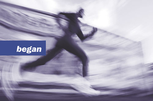 Для компании "Бегун", лидера отрасли контекстной интернет-рекламы была разработана серия поздравительных открыток. Таким образом, мы хотели отметить 5-летие с момента начала деятельности компании. * begin (анг.) - начинать(ся) Гл., прош. вр. - began, прич. прош. вр. begun