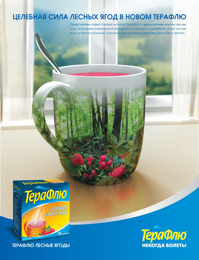 Оригинальная кружка с проявляющимся термо-рисунком подчеркивает новый вкус лекарства - ТераФлю лесные ягоды.